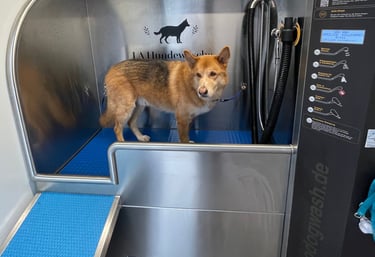 "Sehr sauber und gepflegte Waschbox! Wir kommen wieder! Unser Fiete war rundum zufrieden."