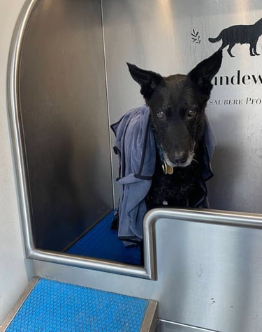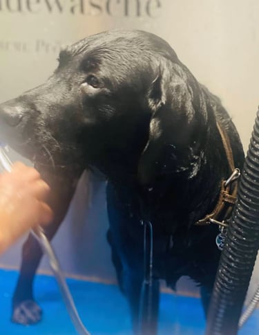 In unseren Waschanlagen wäschst du deinen Hund in privater Atmosphäre.