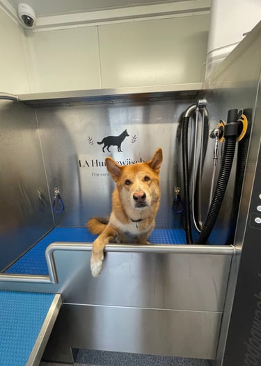 Wir machen Hundewäsche so stressfrei wie möglich. Mit professioneller Ausstattung in privater Atmosphäre. Du behältst die Kontrolle, dein Hund bleibt entspannt.